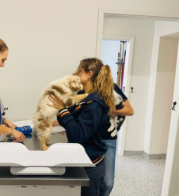 We have a deworming and vaccination protocol that involves worming the puppies every 2 weeks until they head home. First puppy vaccine is given at 7 weeks of age, then they need to be scheduled every 3-4 weeks until the series is completed. Rabies vaccination is done after 12 weeks of age. Bordetella is another vaccine that is recommended if your Aussie will be traveling with you.